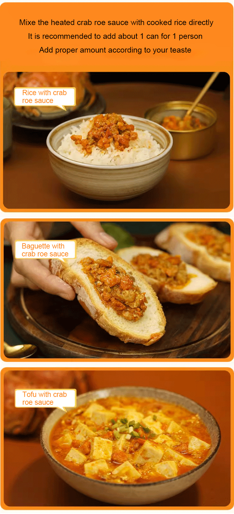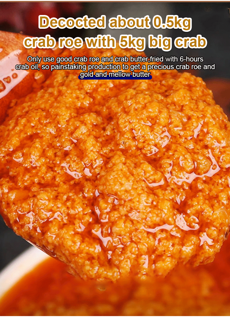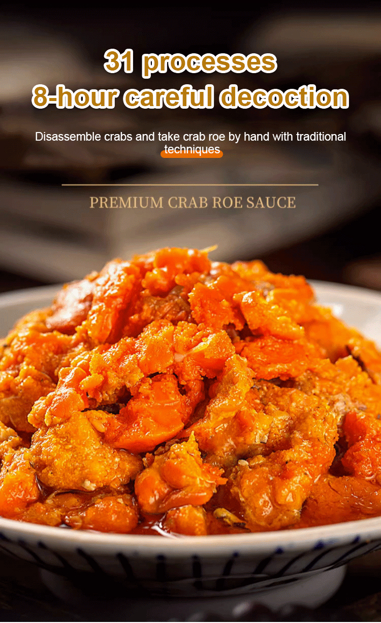 【100% PURE CRAB ROE】🦀 Each jar of our crab roe sauce is made from 8 hand-picked, live deep-sea crabs, delivering an incredibly rich and savory flavor. ✨