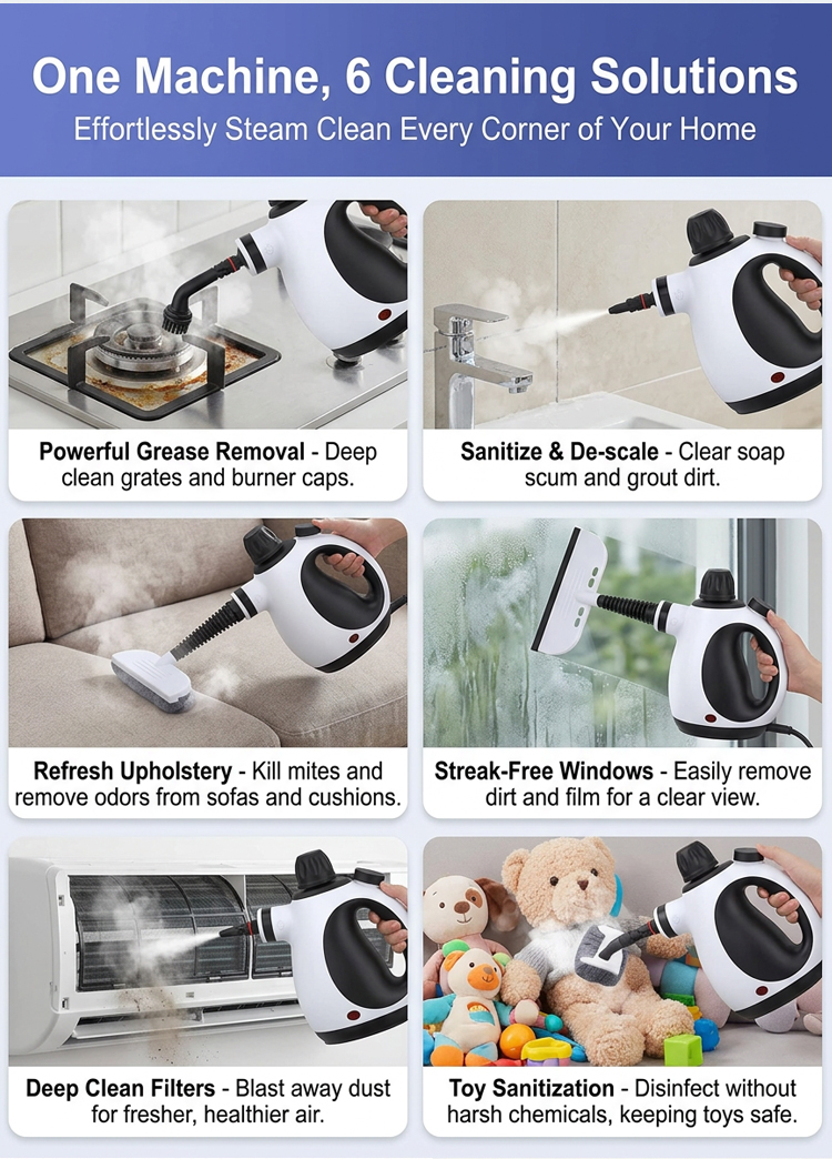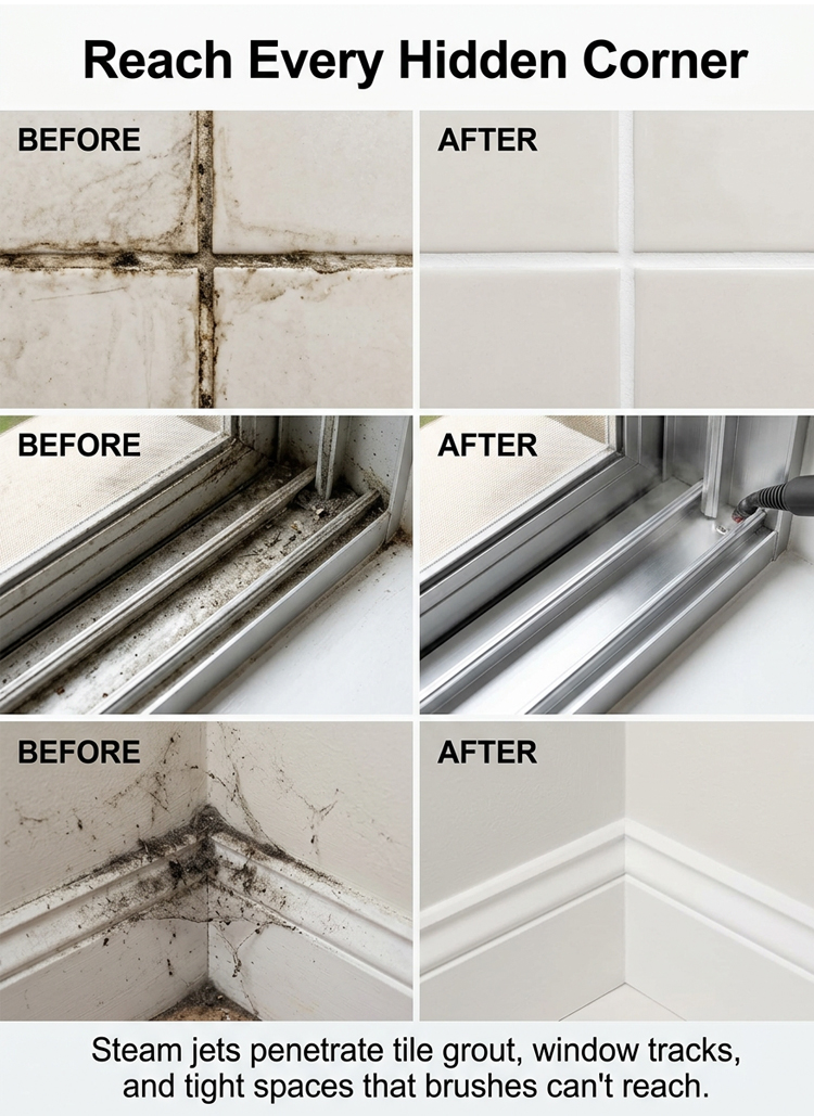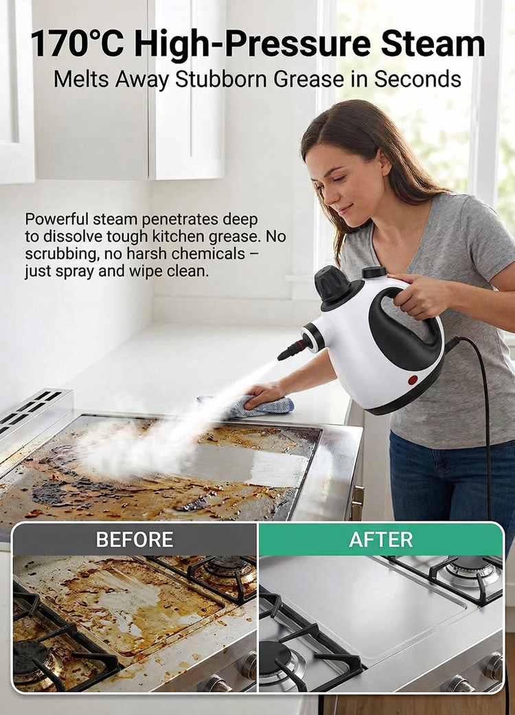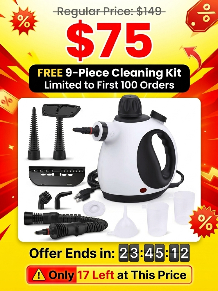 Stop the "Weekend Scrubbing"! 🧽 Tired of sweating over gross bathroom grout & sticky kitchen grease? 🙄 2500W pure magic blasts 221℉ steam in just 15s. No toxic chemicals, no sore arms, no hidden germs. 🚫 100% Kid & Pet Safe! 👶🍼 1-hour non-stop tank. Melt dirt away instantly! ✨ First 100 orders get a FREE 9-pc detail kit! 🎁