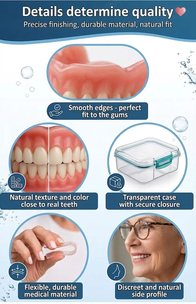 1s Snap-On Smile: No Glue, Perfectly Fits Even with Missing Teeth. Natural White & Ultra Durable